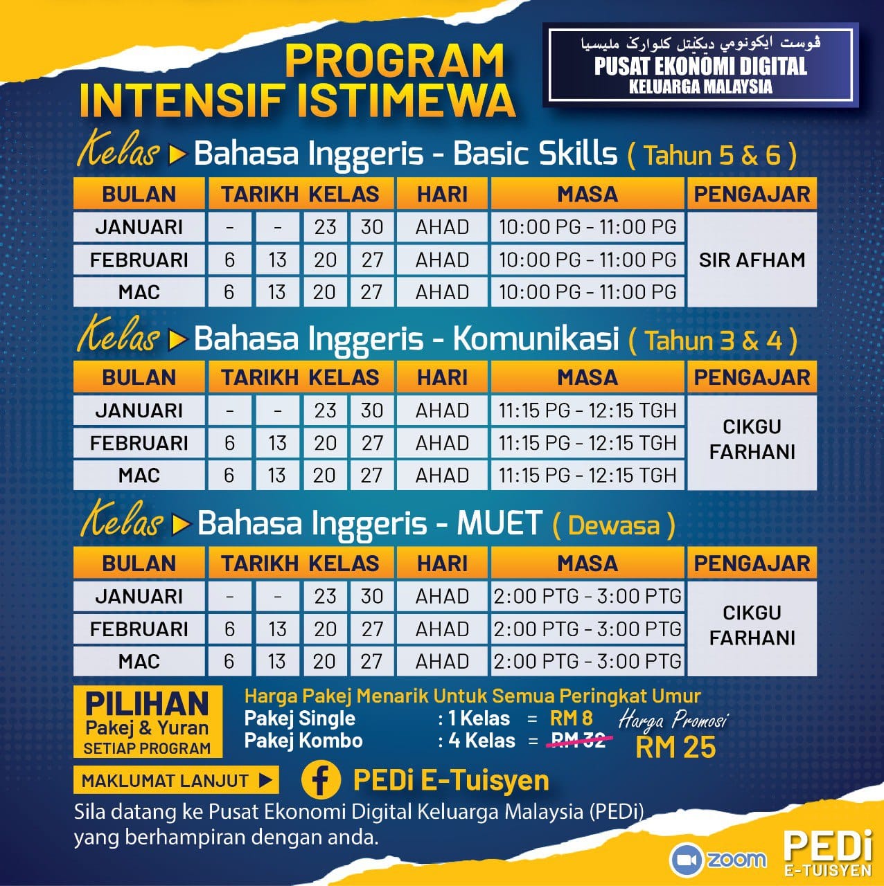 Jadual Kelas E-Tuisyen Januari – Mac 2022