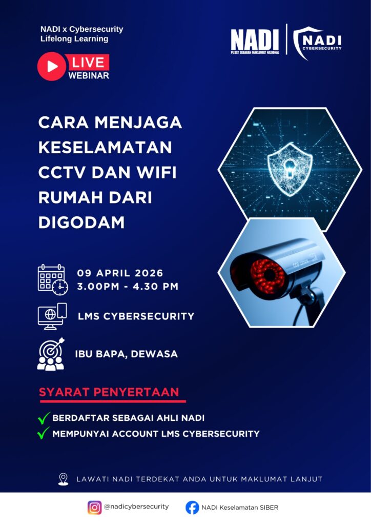 ๐ Dalam webinar ini, peserta akan didedahkan dengan langkah-langkah penting bagi melindungi rangkaian WiFi dan sistem CCTV di rumah daripada ancaman siber.